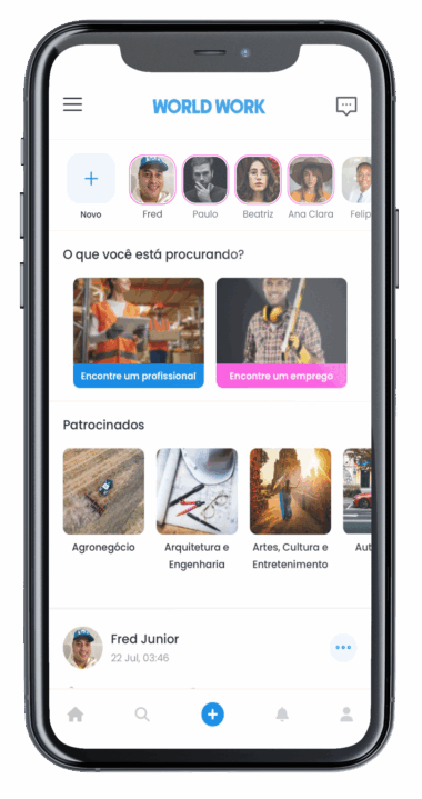 A World Work, em parceria com seus usuários que oferece vagas de emprego e incentiva profissionais a publicarem seus currículos e serviços para ampliar suas chances no mercado.